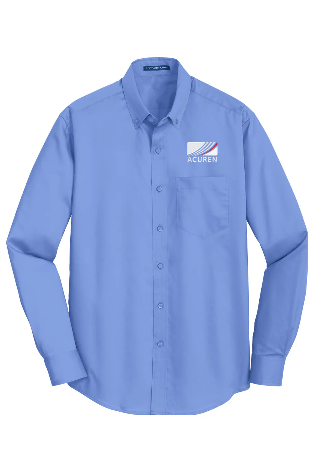 Stay sharp and comfortable with Men’s Twill Shirt, a versatile piece designed for professional performance and everyday wear. Made from a durable cotton and polyester twill blend, this shirt helps maintain a neat appearance while offering reliable comfort throughout the day. Its classic design features a button down collar, matching buttons, and a chest pocket for a clean and structured look. Back shoulder pleats allow for easy movement, while rounded adjustable cuffs add a practical finishing touch. Finished with embroidered detail, this twill shirt is a dependable choice for offices, hospitality settings, or branded uniforms.