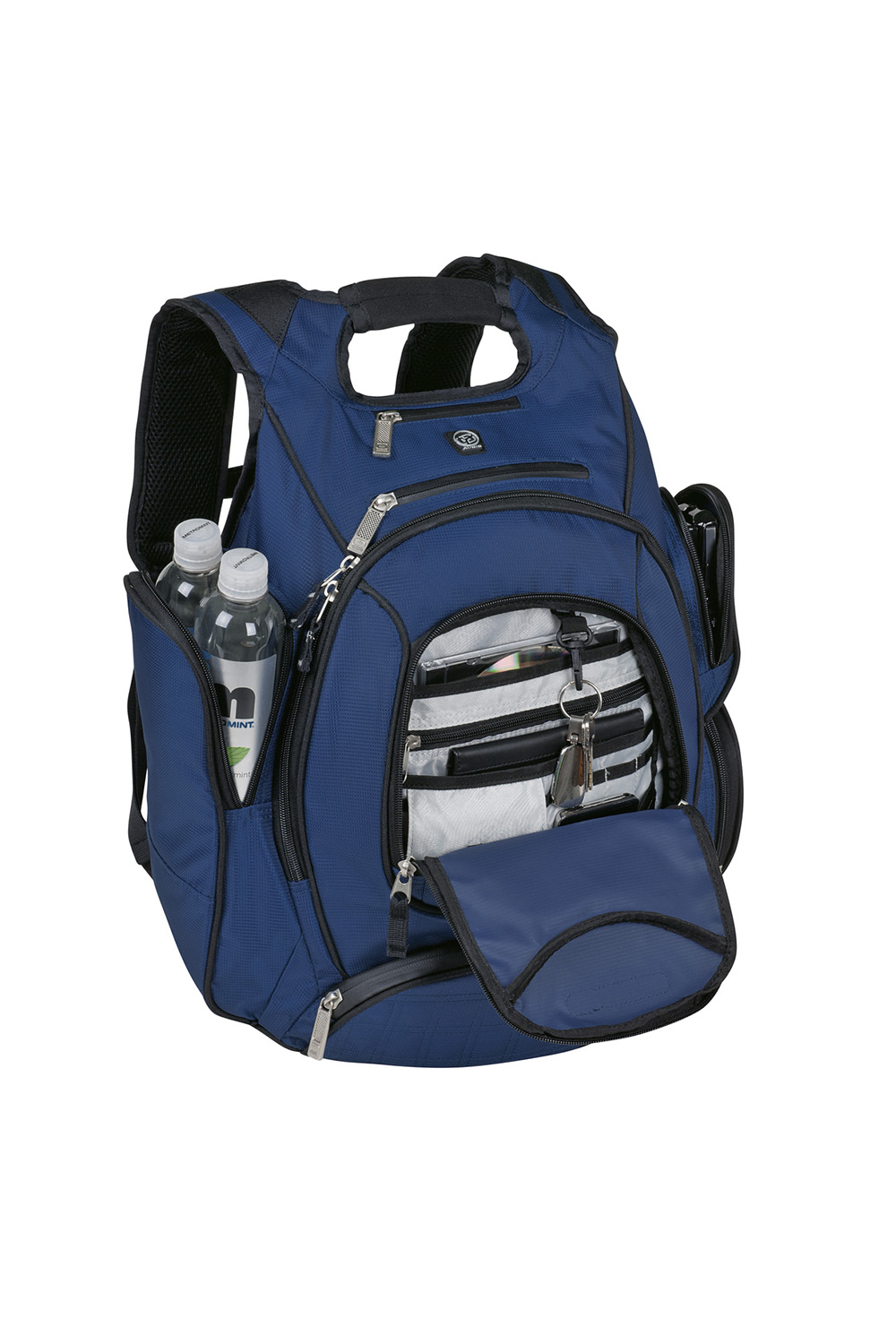Stay organized on the go with Metro Laptop Backpack, a functional and professional pack designed to carry your tech with ease. The padded laptop pocket fits most 17 inch laptops, while the spacious main compartment offers room for daily essentials. Thoughtful storage areas keep cords, accessories, and files neatly in place, and protected media pockets help safeguard your devices. Durable and easy to carry, this backpack is a reliable choice for work, travel, or everyday use.