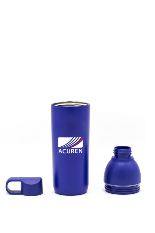 – Double wall stainless steel bottle with plastic cap, dual opening function